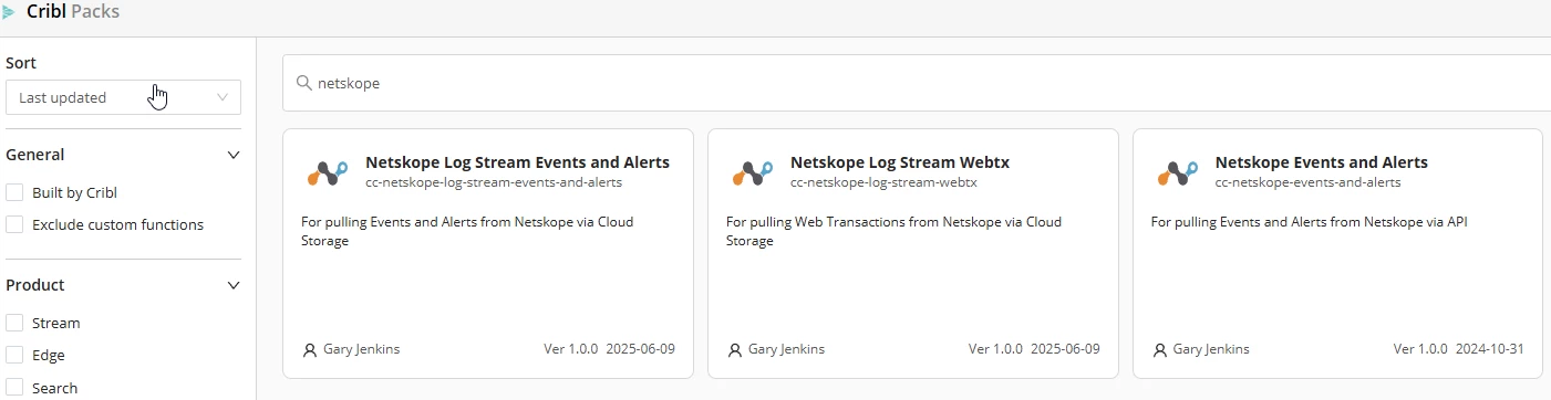 There are two Crilb Packs for NLS and one for API based Events/Alerts https://packs.cribl.io/