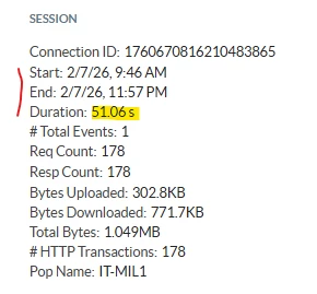 For CloudApp traffic we have session duration values that differ greatly from end -start intervals