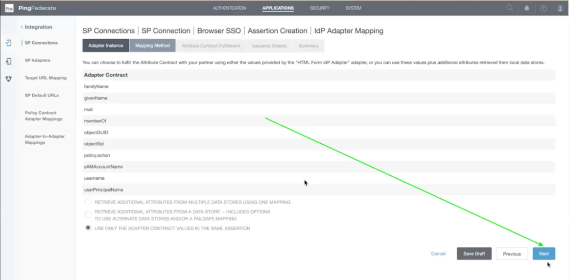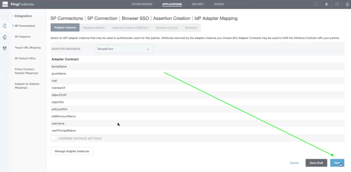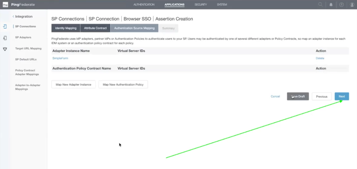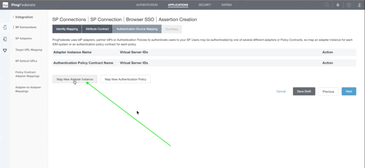 Step 26 - Now we need to add the Adapter Instance and Authentication Policy contract name. To keep it simple, we will add the HTML Form adapter which is used for MFA and in Authentication Policy we can add the policy. Click on Map new Adapter.