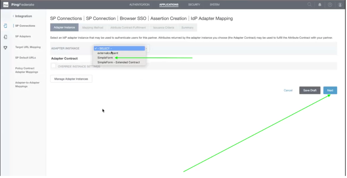 Step 27 - Now click on Adapter Instance and select the Simple Form adapter from the dropdown which we have created before. Then click on Next.