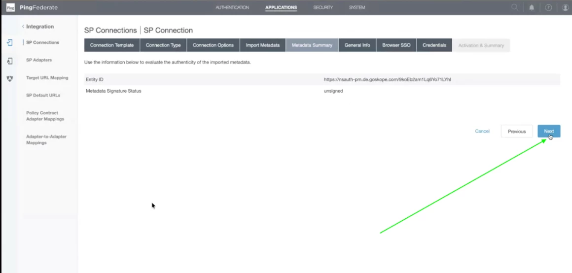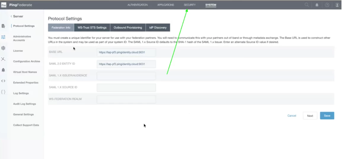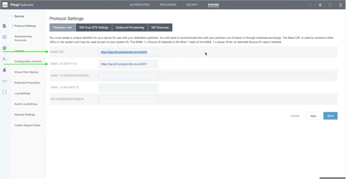 Entity Id => https://tap-pf3.pingidentity.cloud:9999
