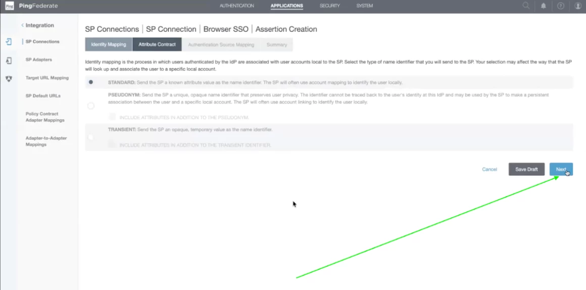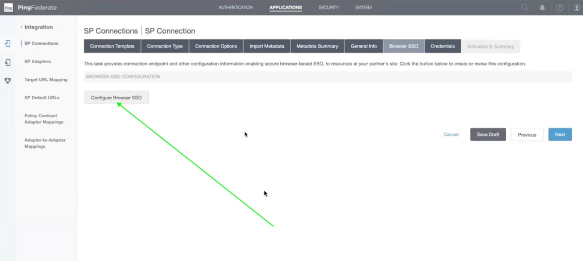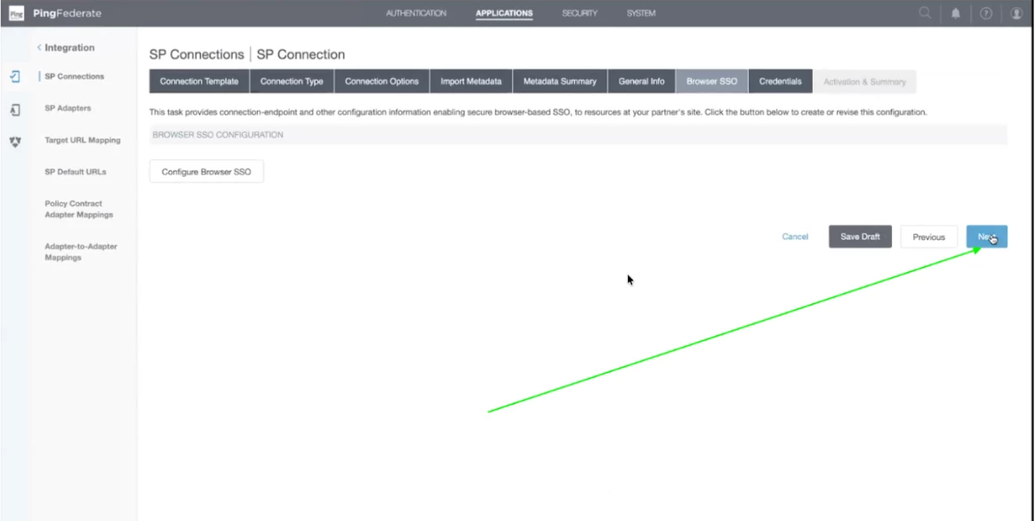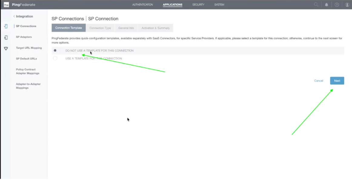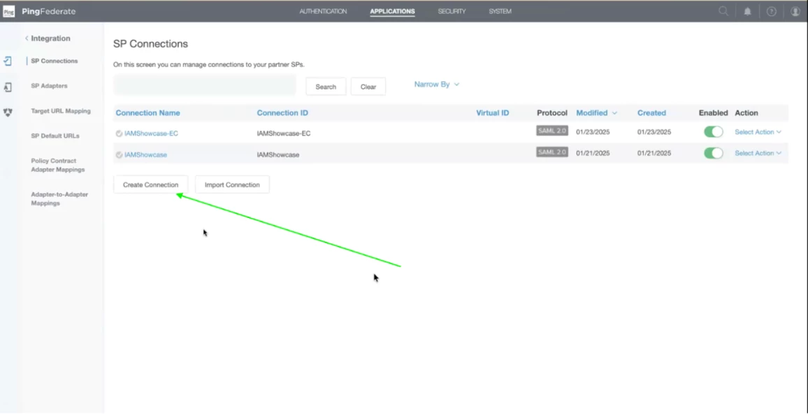 Step 3 - In the SP Connections, Click on Create Connection. A SP (Service Provider) Connection is a configuration set that allows PingFederate (acting as the Identity Provider or IdP) to securely communicate and share identity data with an external application or service.