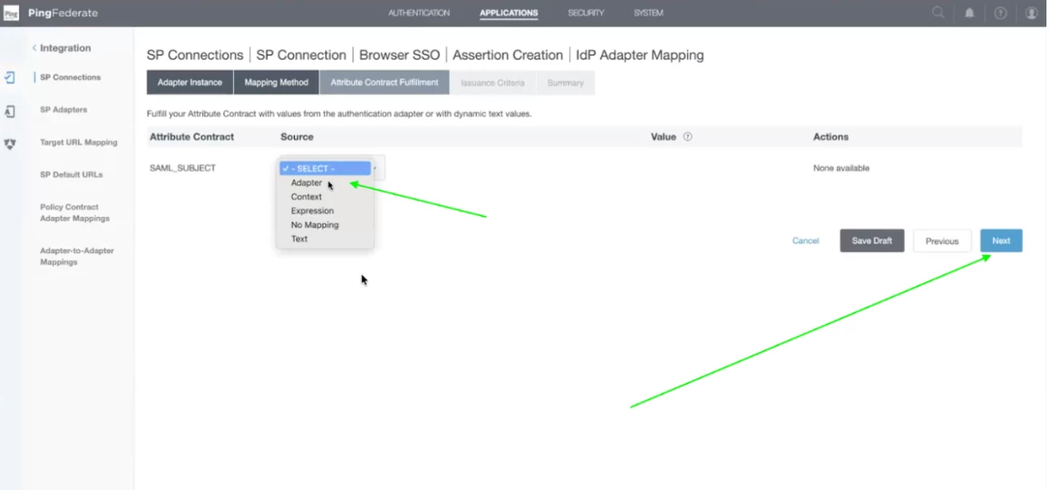 Step 30 - Now select the SAML Subject. From the dropdown menu, select the Adapter and click on Next.