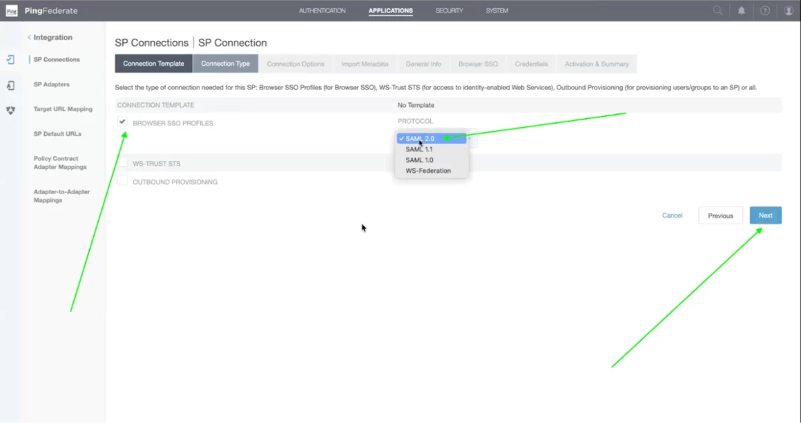 Step 5 - Check on Browser SSO Profiles and select SAML 2.0 and click on Next.