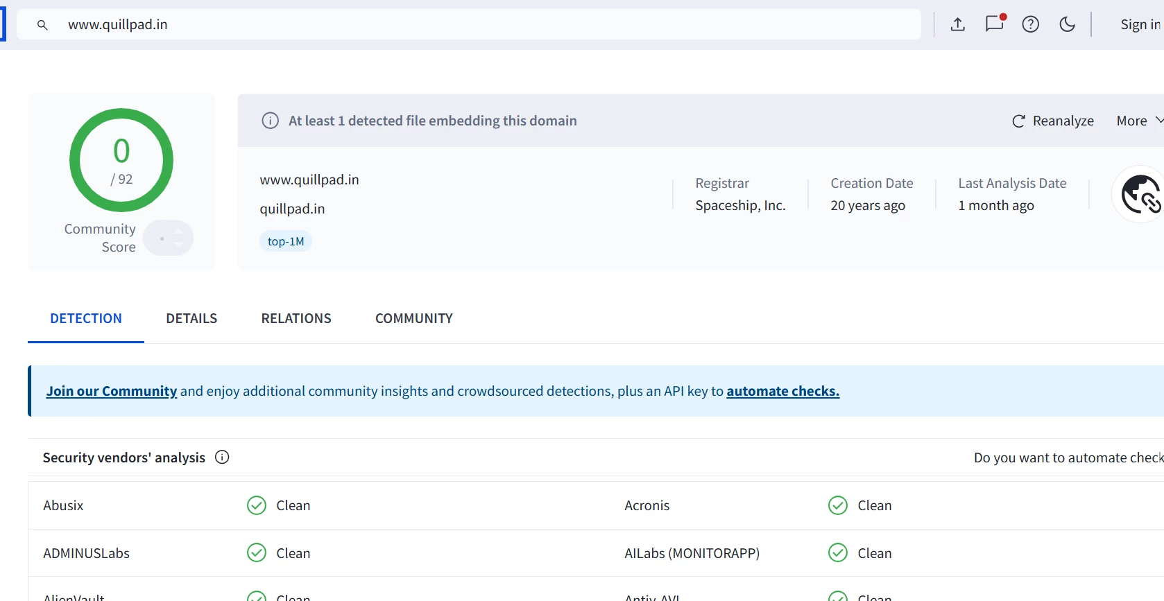Quillpad is showing unknow in CCL is it safe to allow this translation app to our users. In virus total I don't see any malicious tag to the application/website. Please check and suggest.