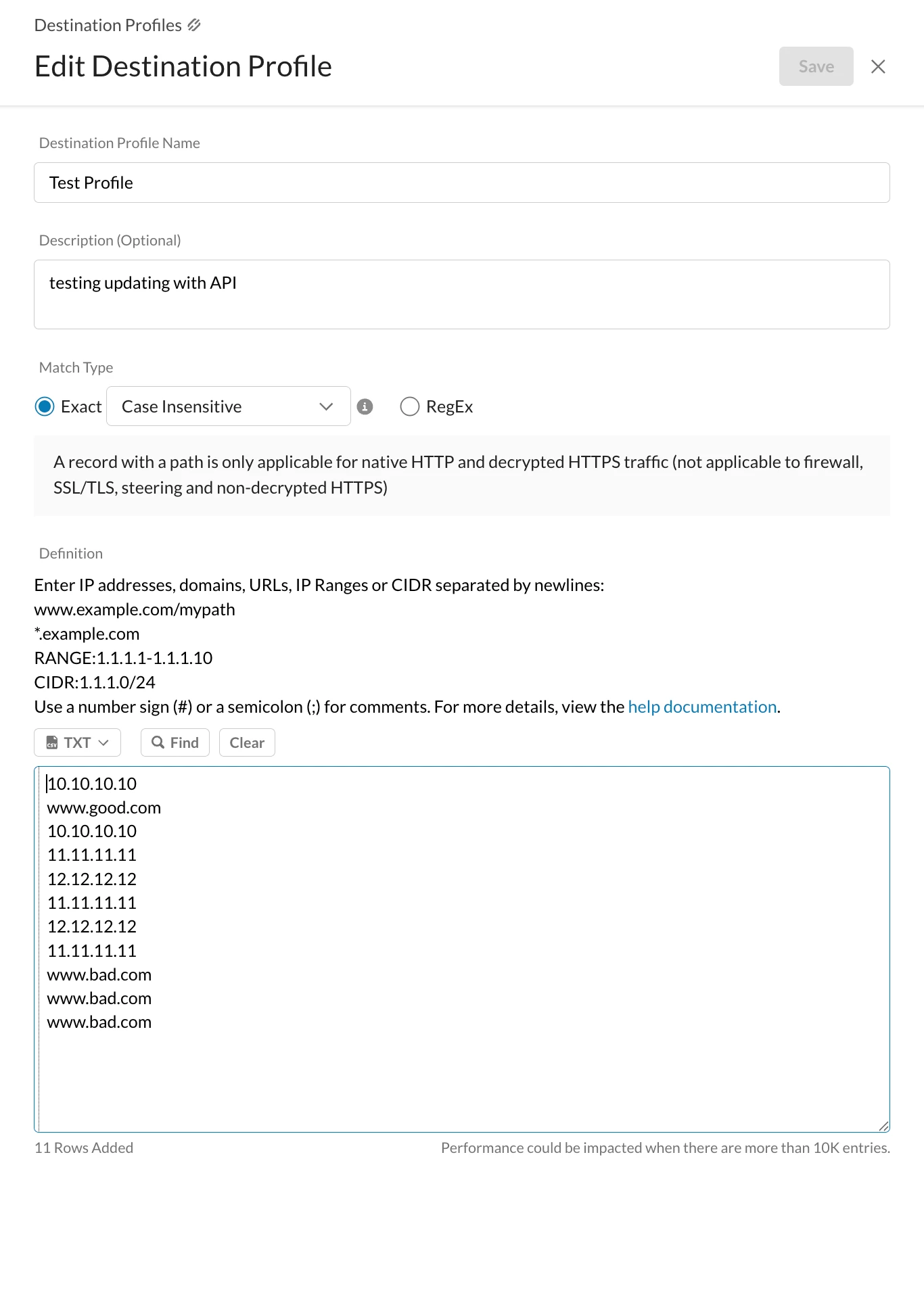 And add the same site, example ....www.bad.com. The api automatically dupes the entry and only adds it if it doesn't exist. This is helpful because some of our URL list are automated via threat intel feeds. While we try to dedup the IOCs before updating the URL list, some do get through, but the URL api handles it.