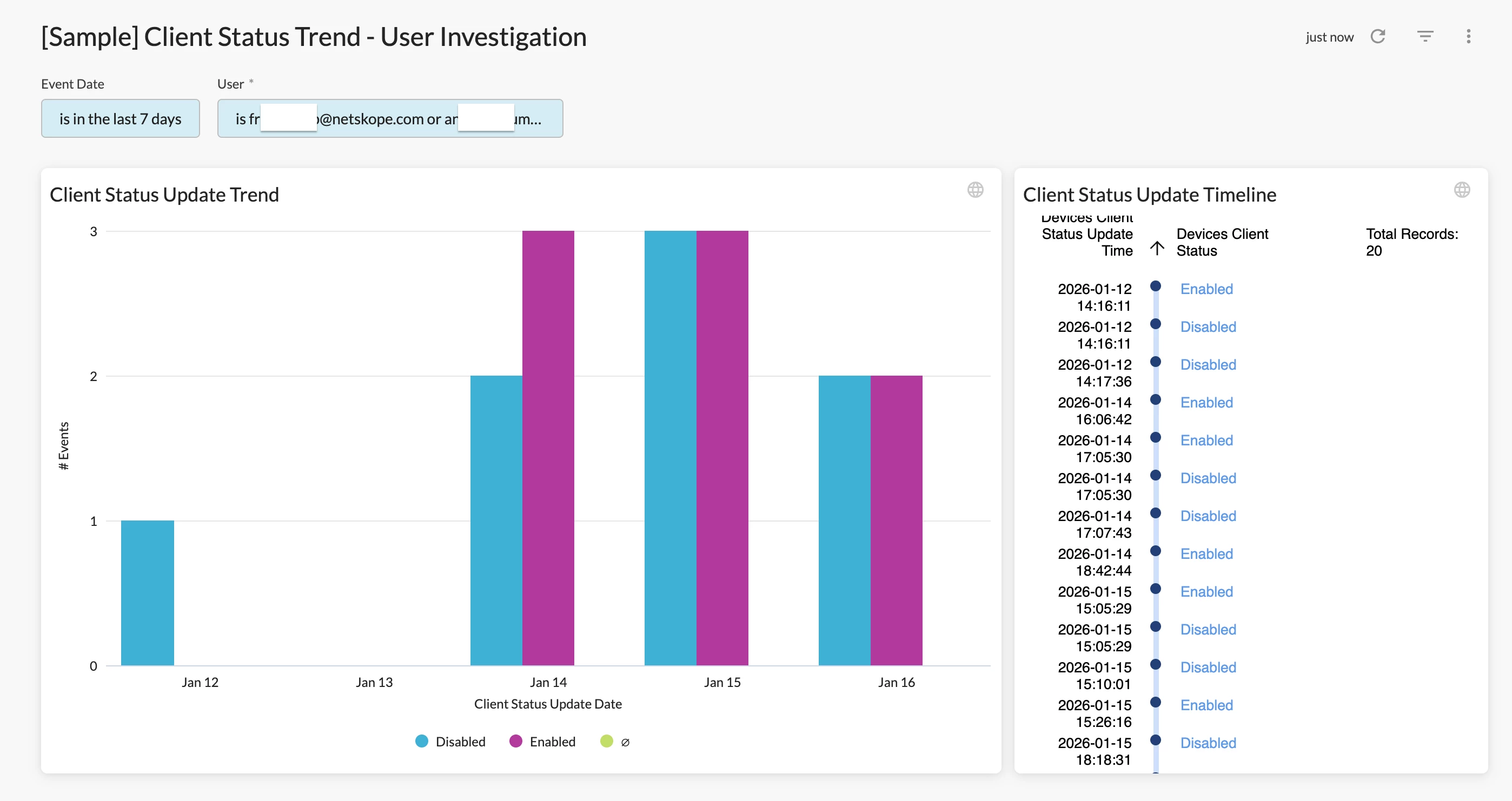 Is there a way we can create dashboard to track all the endpoints that are enabled vs disabled and the observed trend on how often does a user disable the client and enable it again (for example)?
