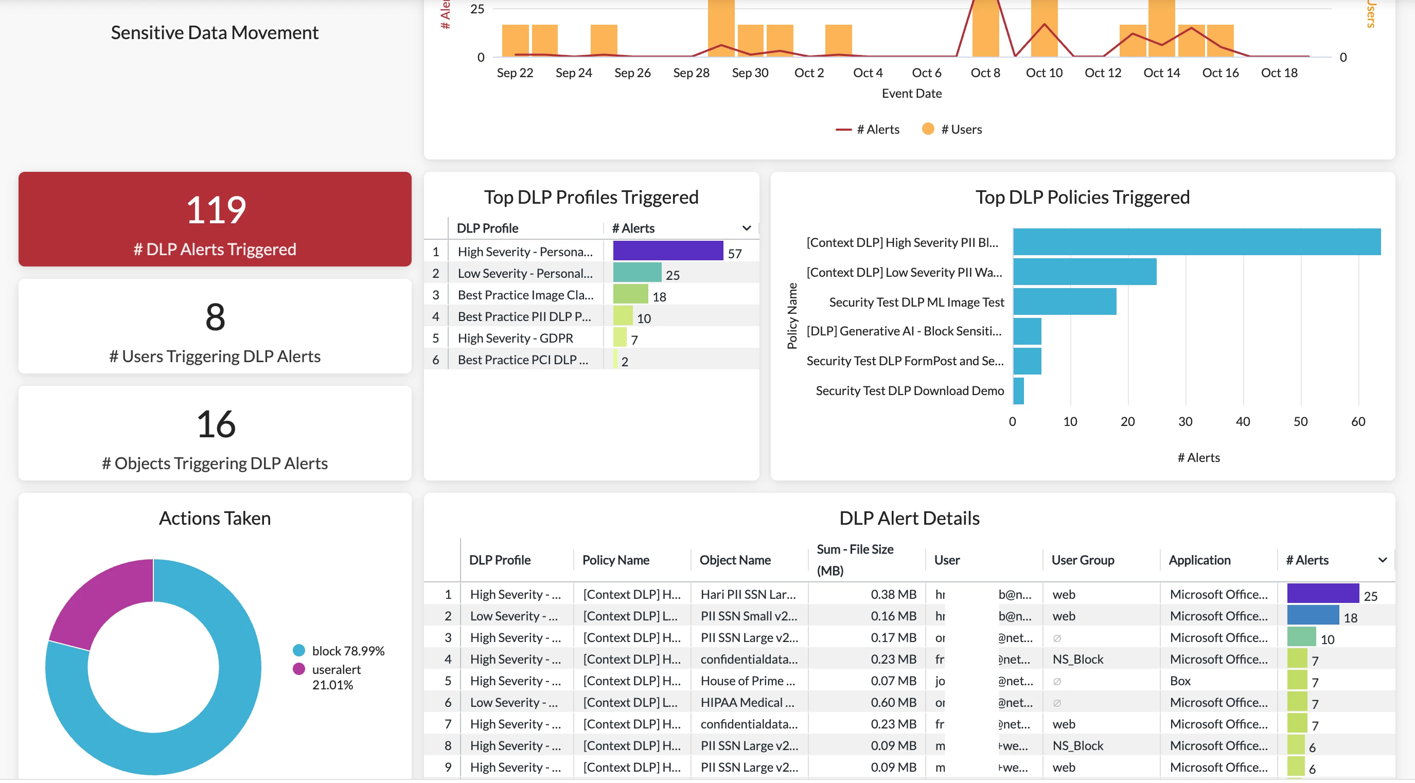 Use this part to monitor DLP policy violations in Enterprise Browser and the corresponding DLP policy actions, making sure you have DLP policies in place taking appropriate control actions on the sensitive data movement detected.