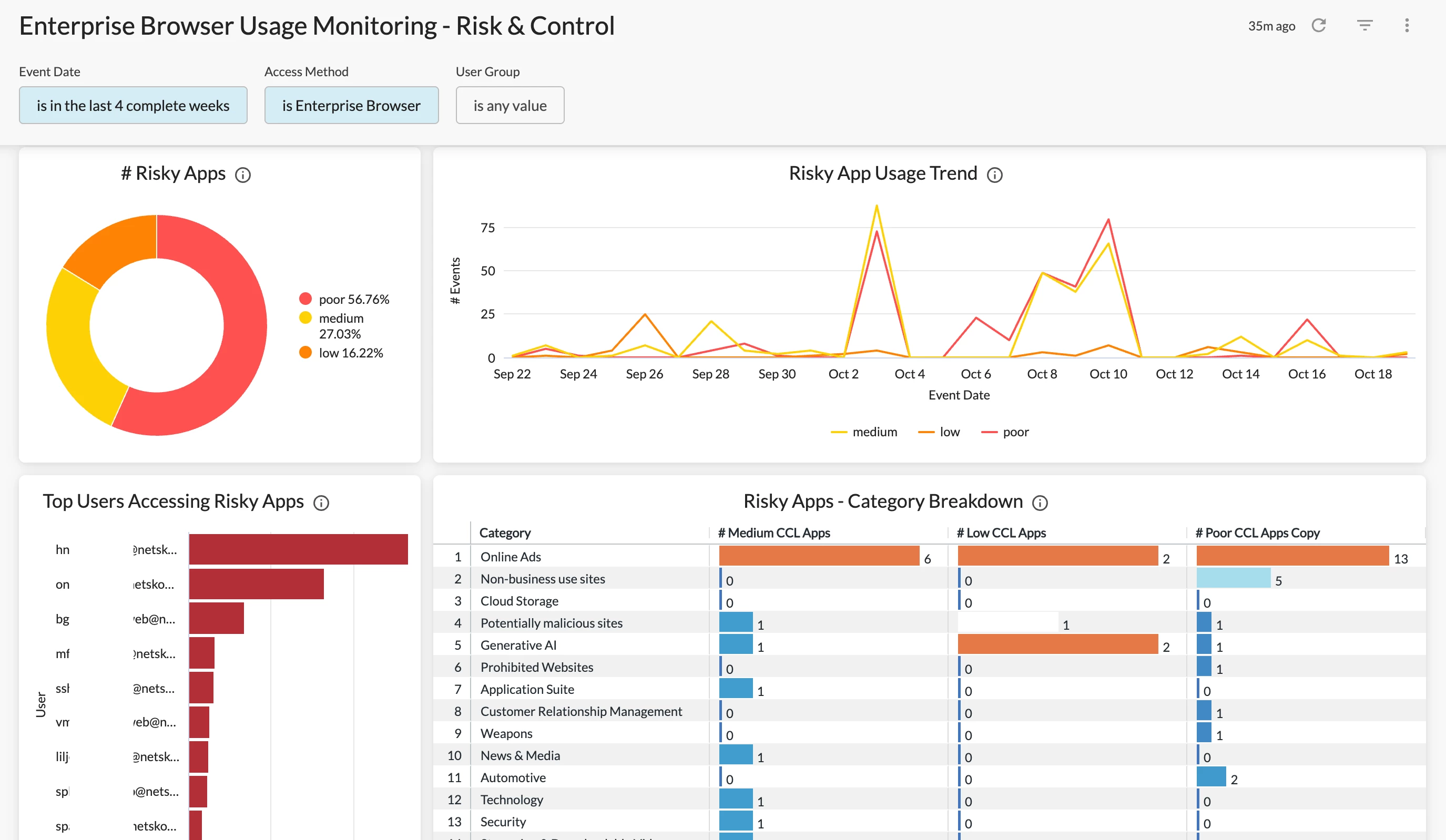 - What unmanaged & risky apps are being accessed in your environment through Enterprise Browser