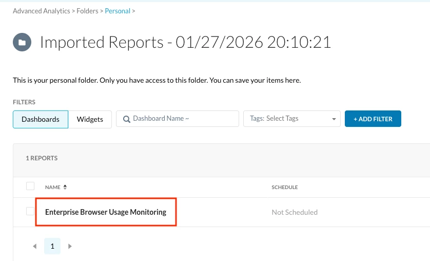 Let’s take the Enterprise Browser Usage Monitoring Dashboard as an example.