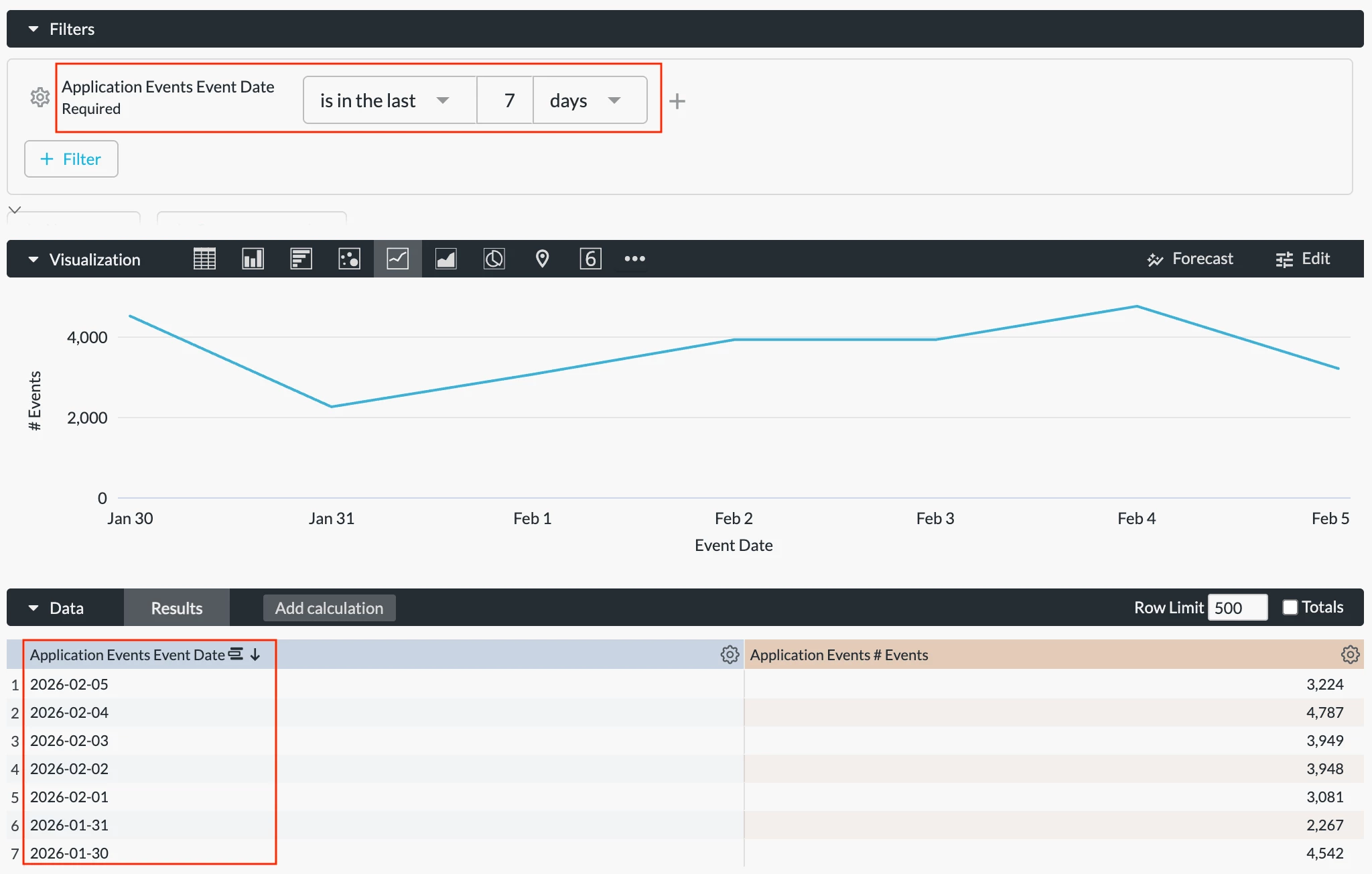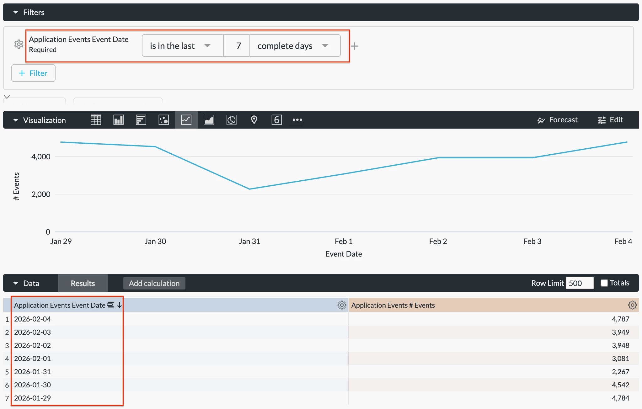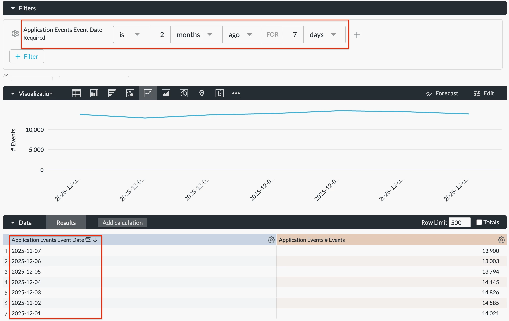 Please also note that the results are controlled by your data retention period. Incomplete data will be returned if your retention period is shorter than the time filter period selected.