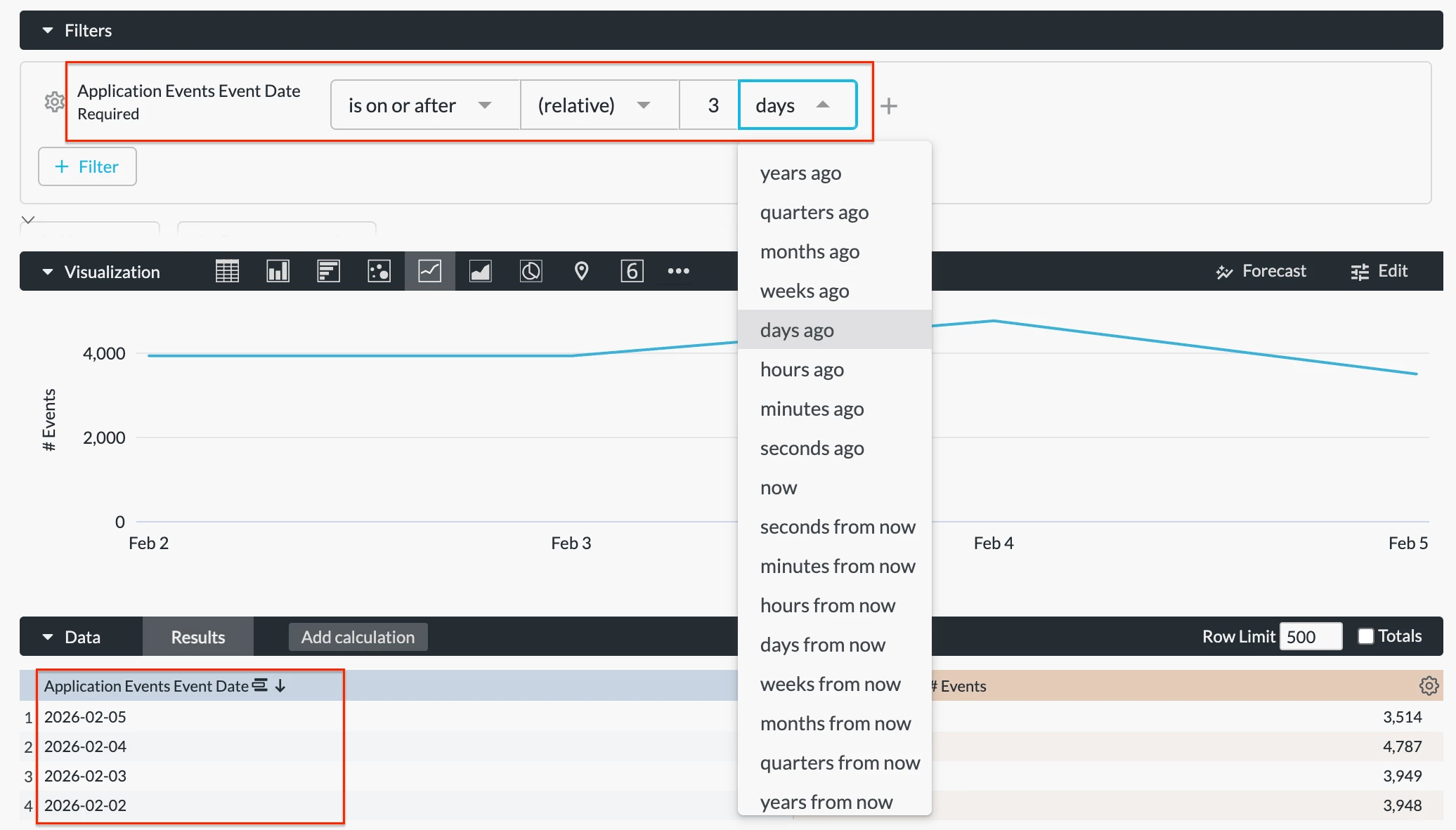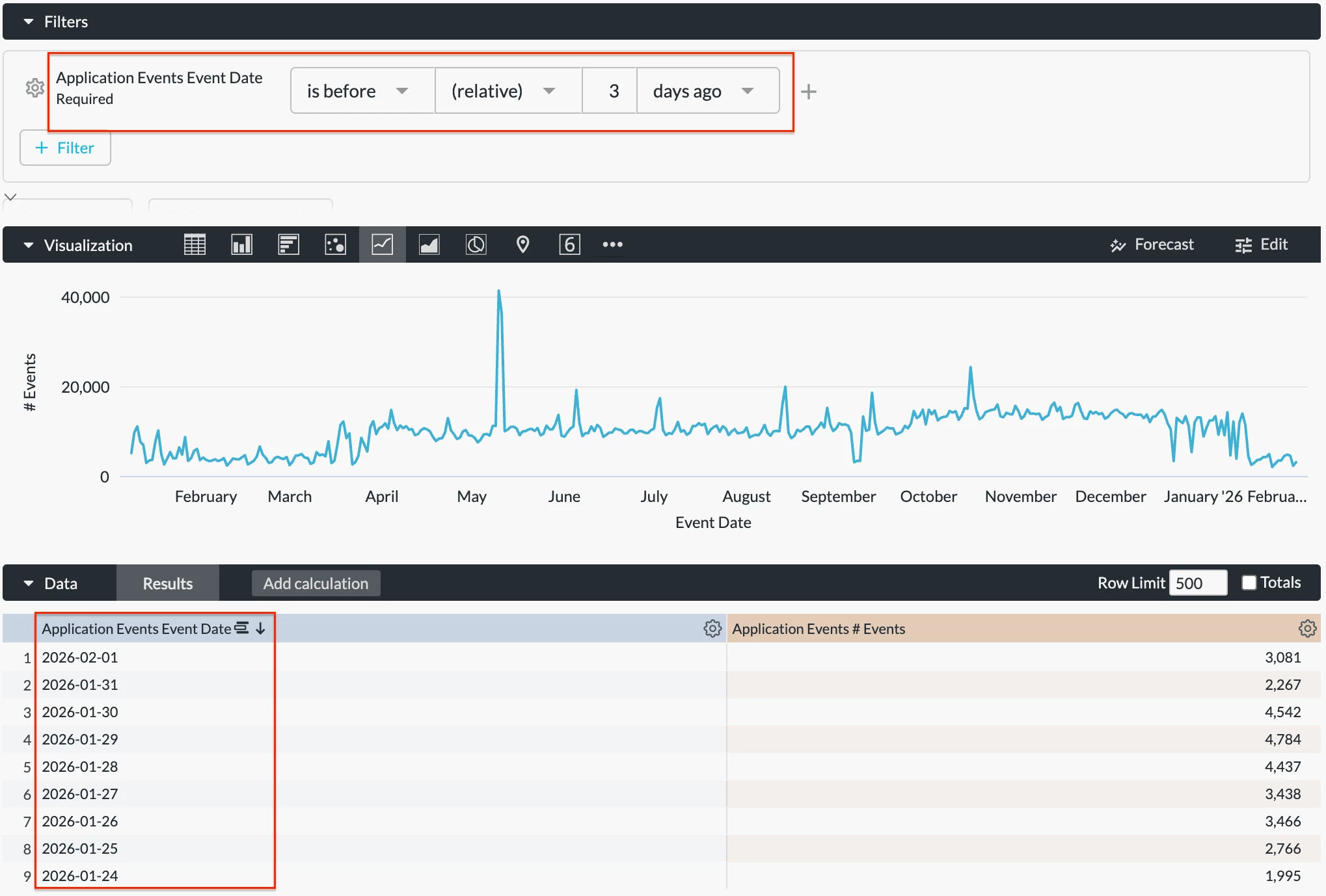 Meanwhile, “is before (relative) 3 days ago” returns data before the last 3 days.