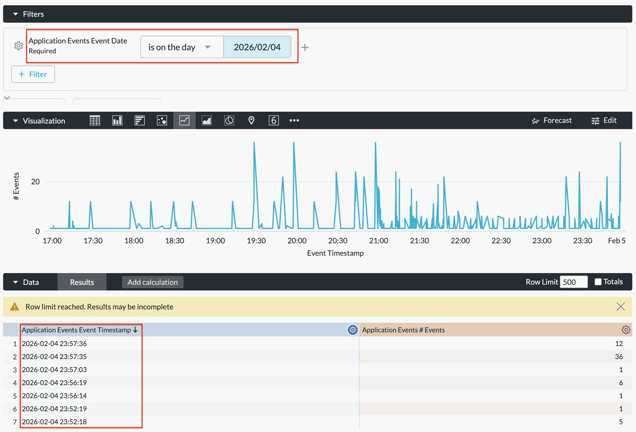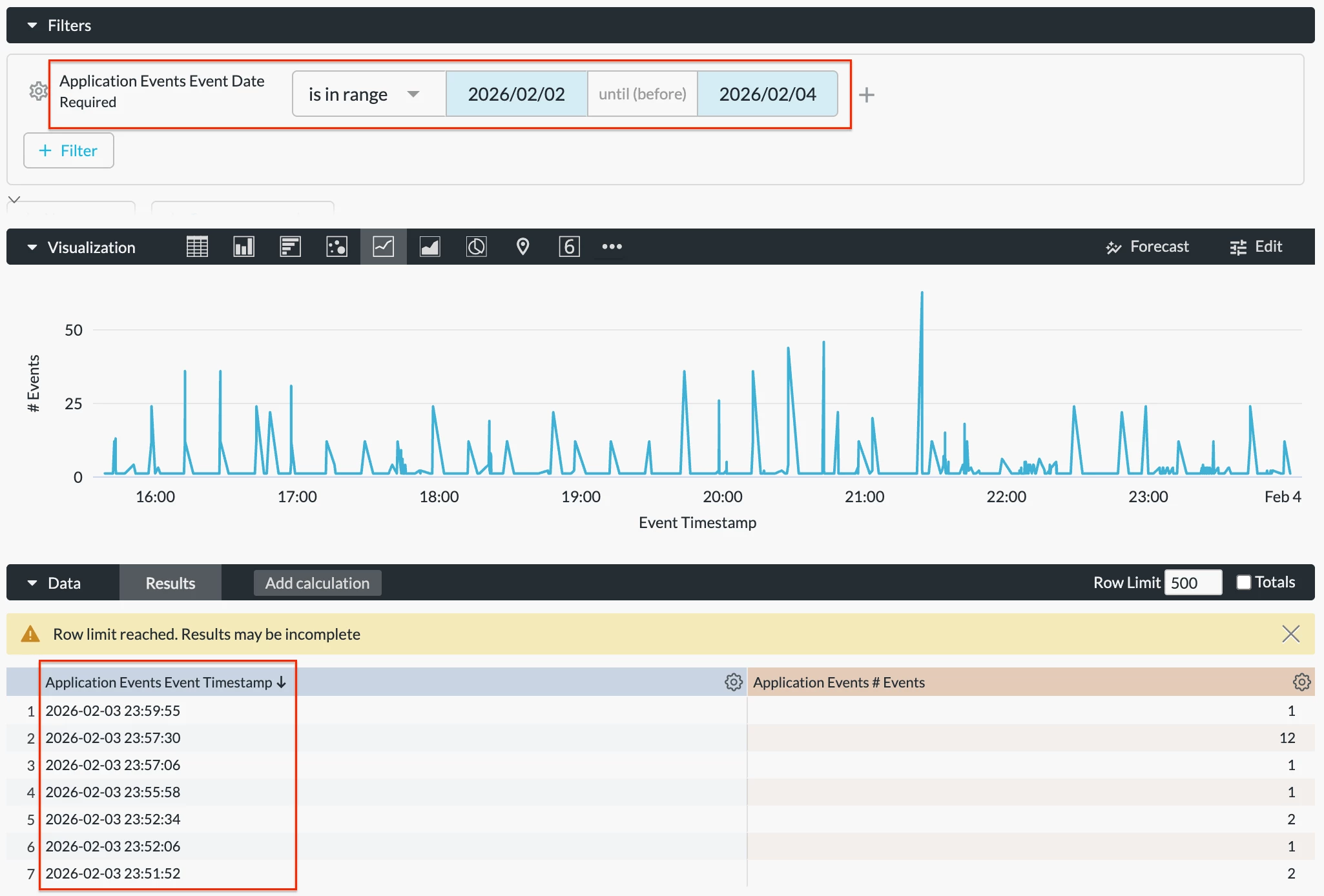 Please note that the results are controlled by your data retention period. Incomplete data will be returned if your retention period is shorter than the time filter period selected.
