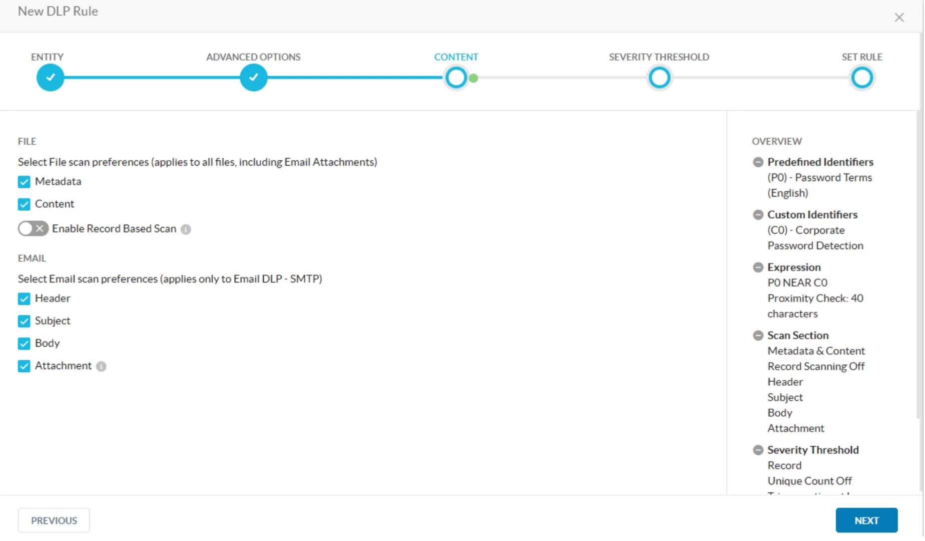 Navigate to >> Netskope UI >> Policies >> DLP >> DLP rules >> New Rule