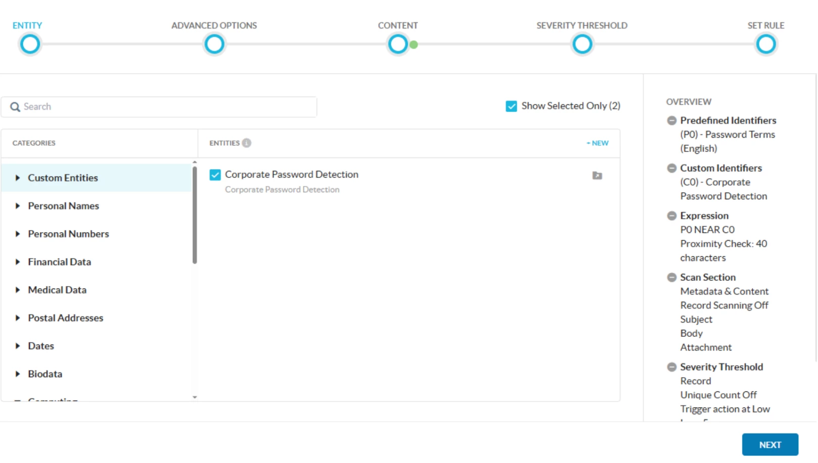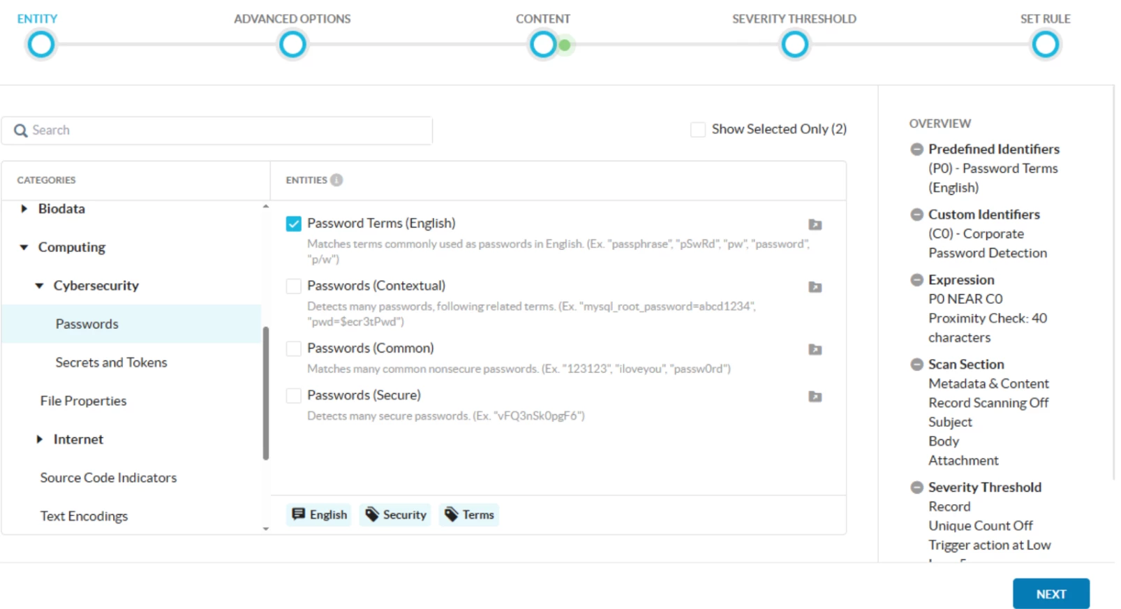 Note: Predefined password entities are aimed to detect general passwords, we do not recommend using these entities for corporate passwords.