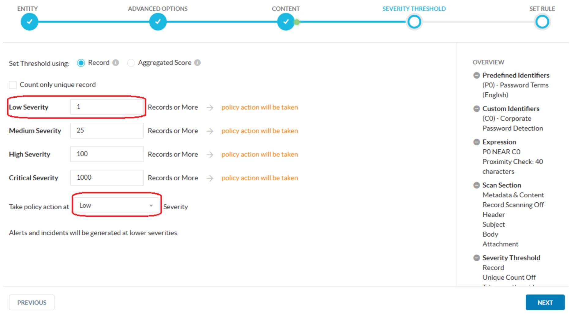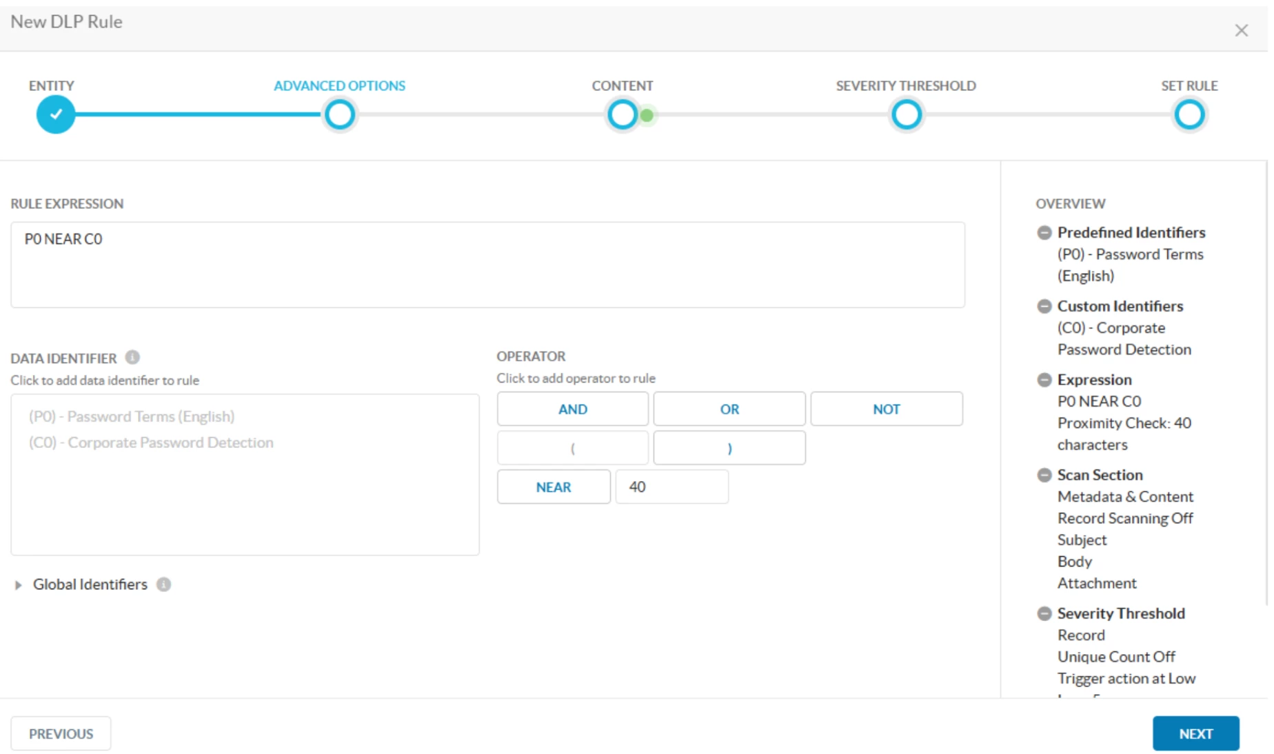 We must create the Rule Expression where (P0) is password terms (English and (C0) is the custom entity.