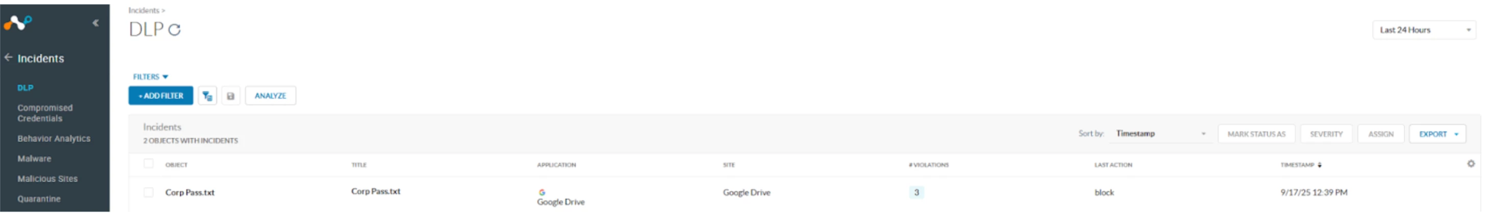 Netskope UI >> Incidents >> DLP >> select the incident related to the policy
