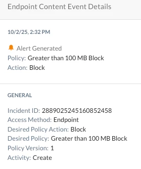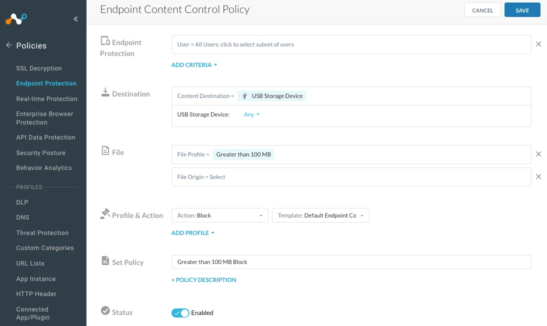 Use case- If a user attempts to transfer a file larger than 100MB, the action should be blocked.