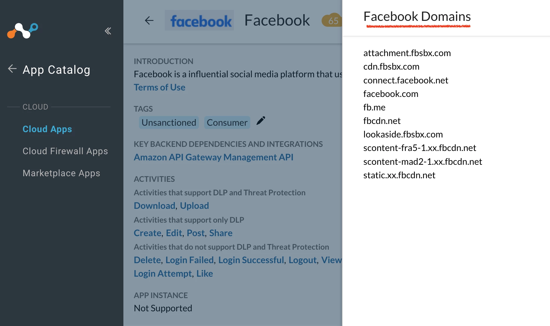 - Netskope acknowledges Facebook as a Cloud Application and provides a pre-defined cloud app connector.