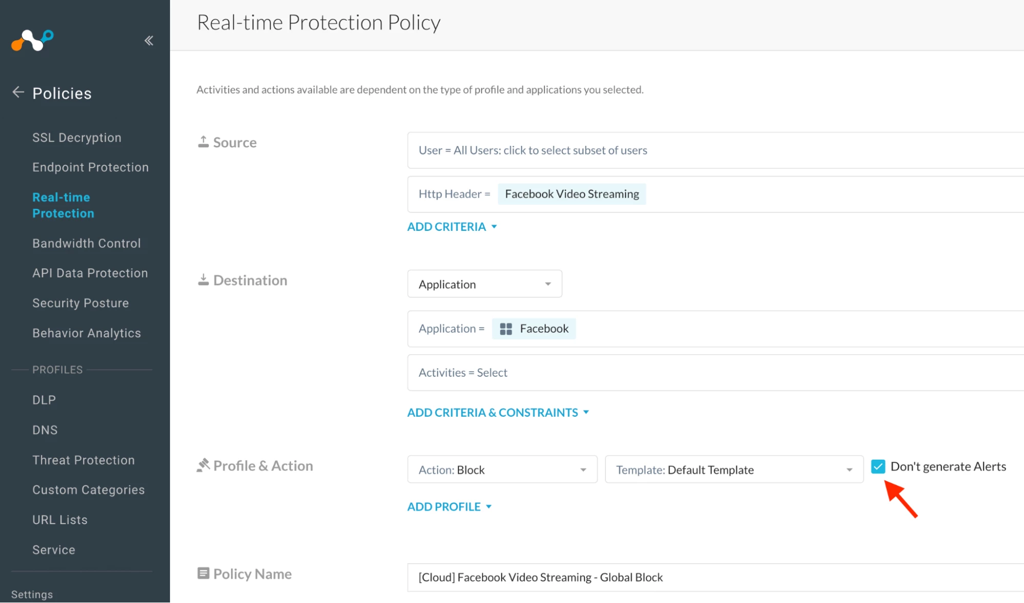 Path: Netskope Tenant UI >>> Policies >>> Realtime Protection Policy >>> New Policy