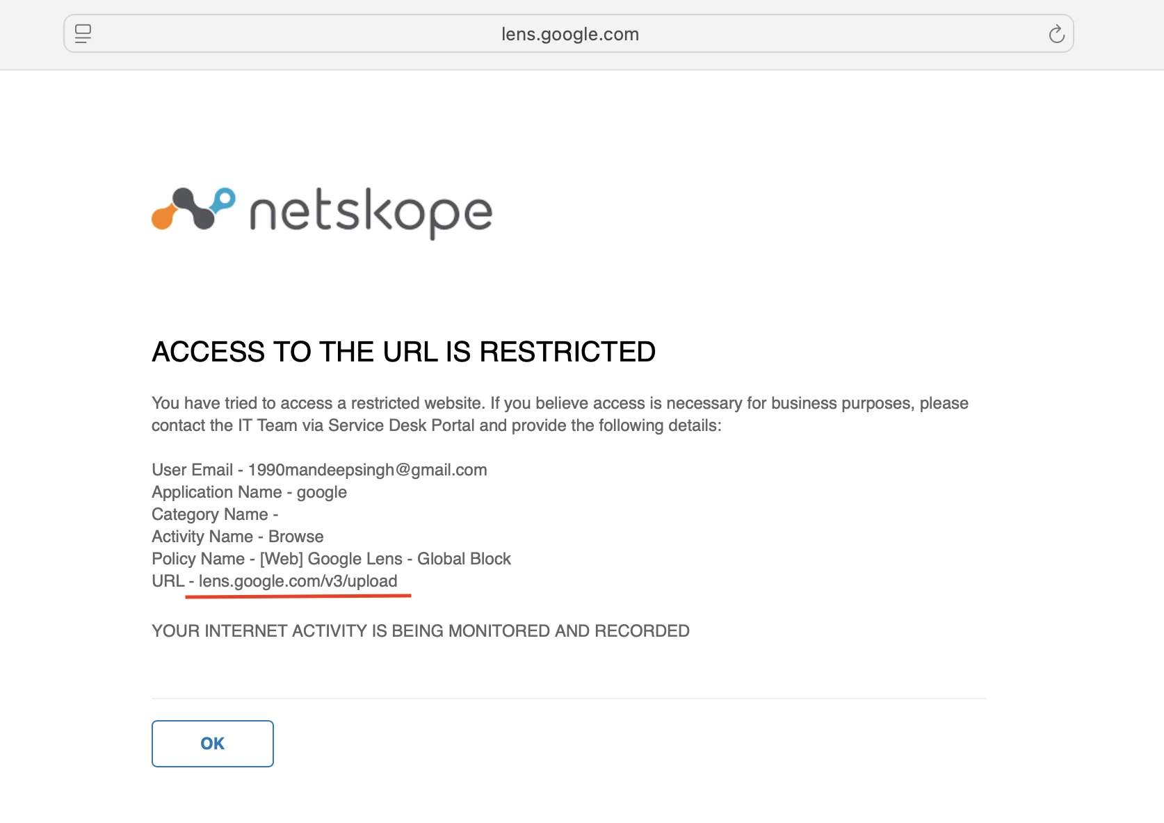 On Google Search, Google provides the Google Lens service. The business requirement is to block access to this service.