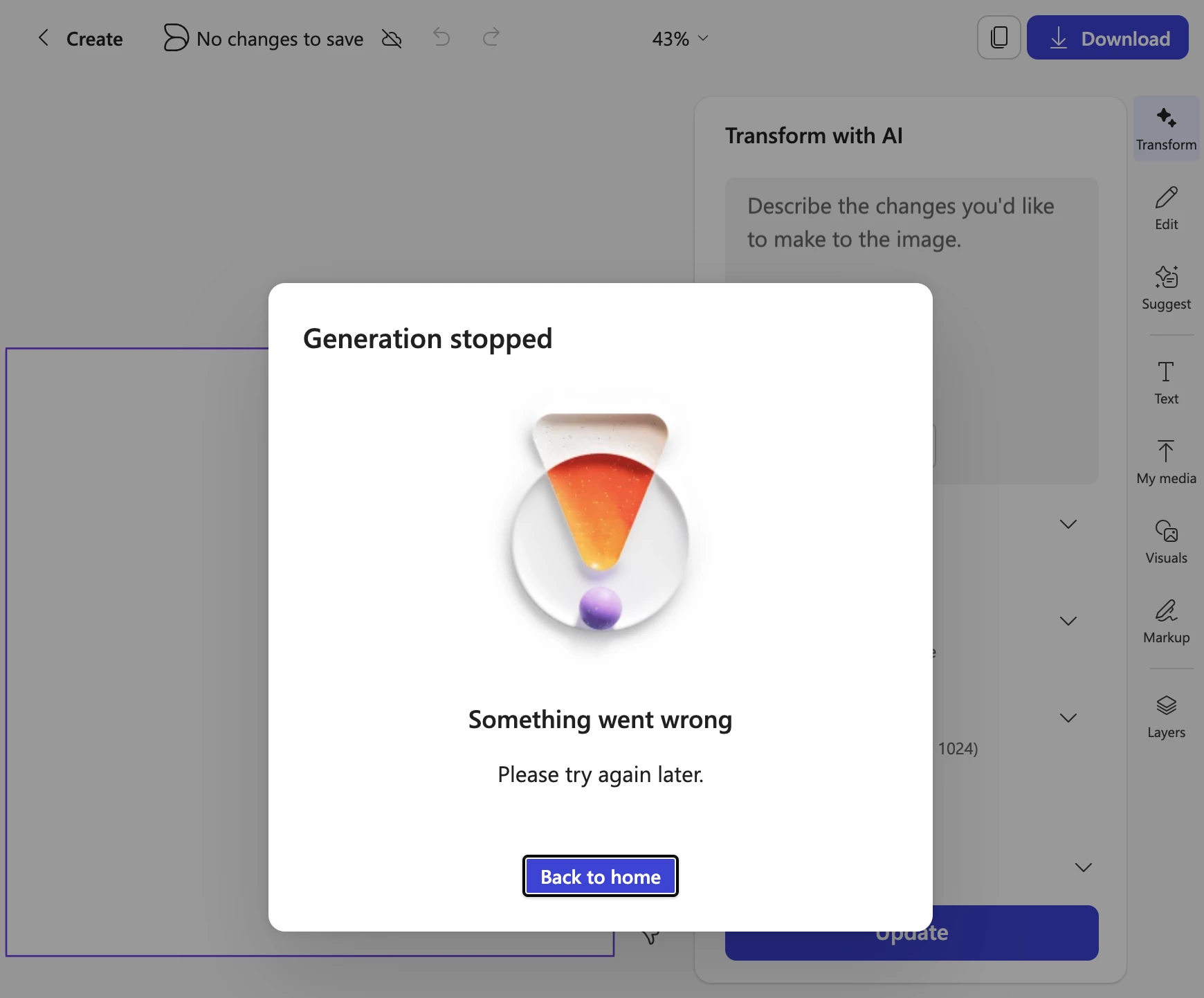- First navigate to https://m365.cloud.microsoft/ and then click on ‘Create’. You will not see a full webpage block. Initially, it may appear that the ‘Create’ option is still accessible, but the moment you try to use it, the ‘Create’ service will fail to load and will not respond.