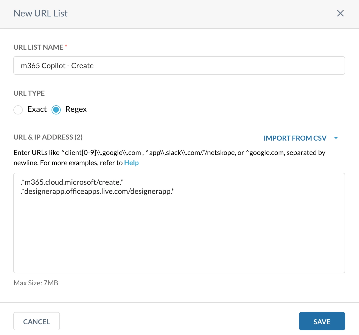 Path: Netskope Tenant UI >>> Policies >>> Profile - - - URL Lists