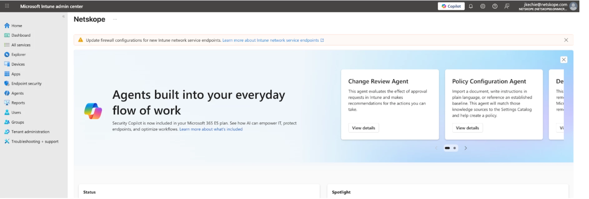 This method is for deploying with Microsoft Intune. This guide details how to deploy the Netskope Enterprise Browser with auto profile enrollment. Netskope Enterprise Browser profiles are leveraging users' corporate email address and for Entra Joined Windows machines, this allows admins to leverage the UPN to have the browser auto enroll upon deployment.