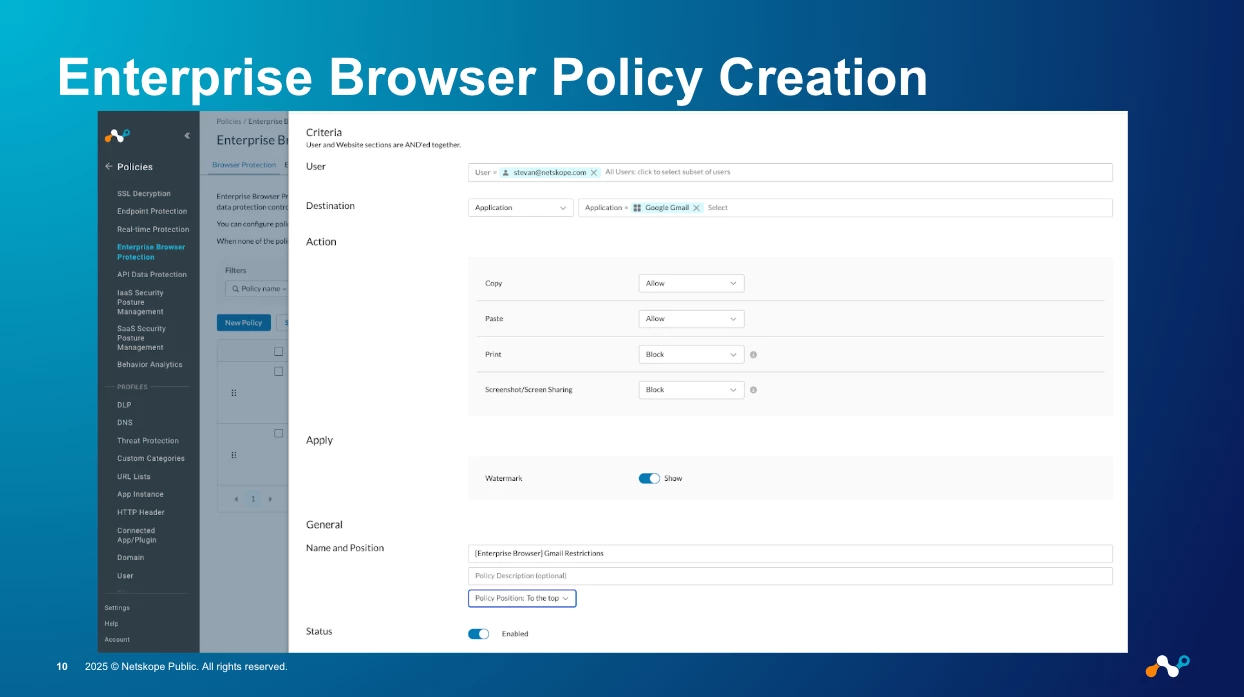 For security analysts and architects, here is how it works. The Enterprise Browser enforces security as part of your unified Netskope policy engine.