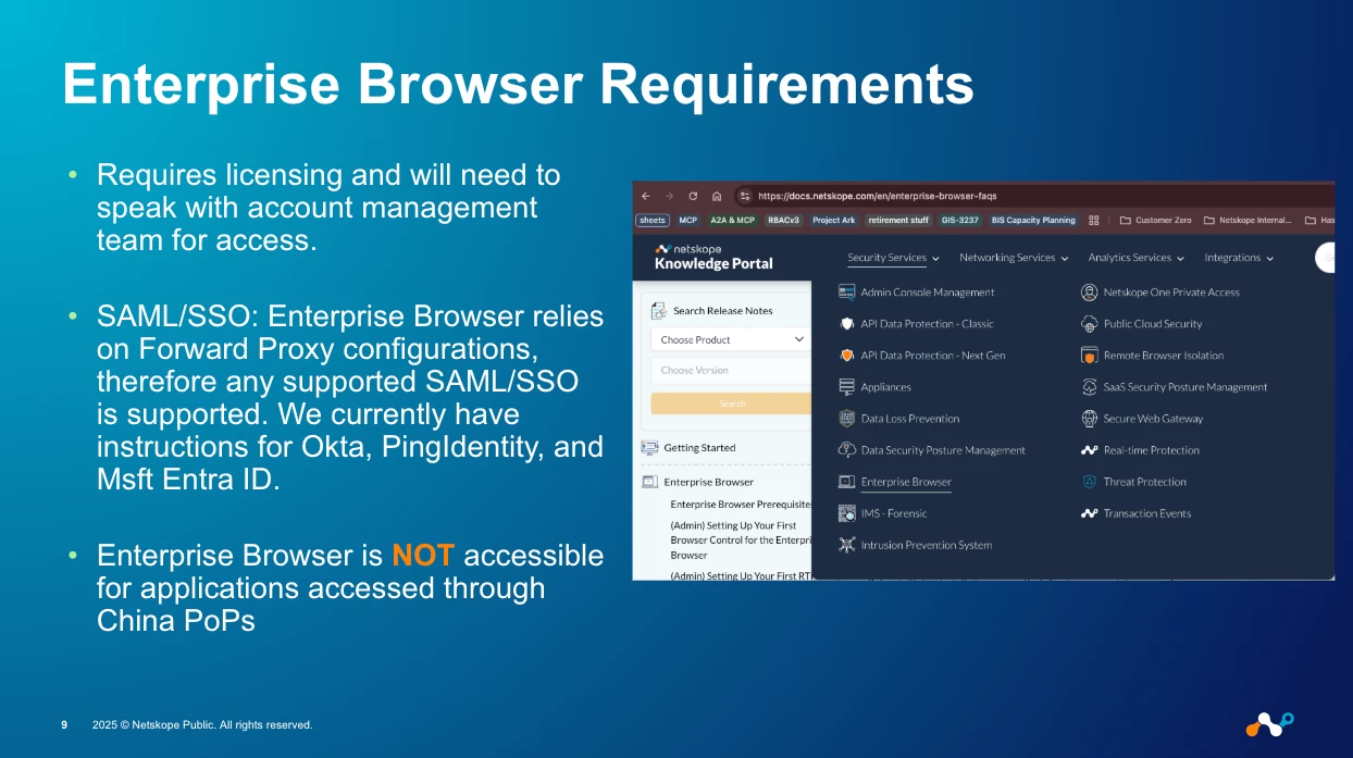 - Limitations: It's important to note that Enterprise Browser is NOT accessible for applications accessed through China PoPs.