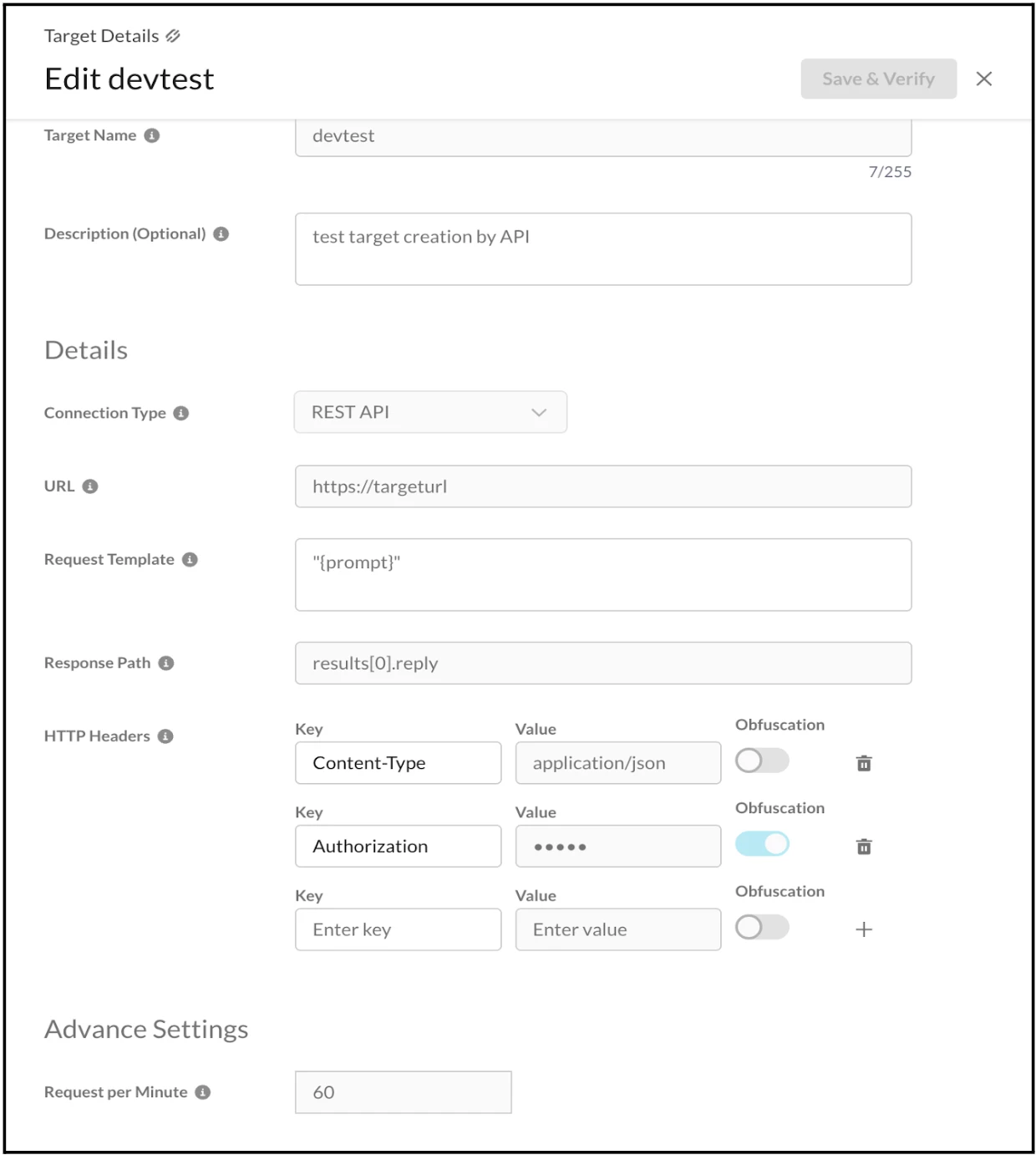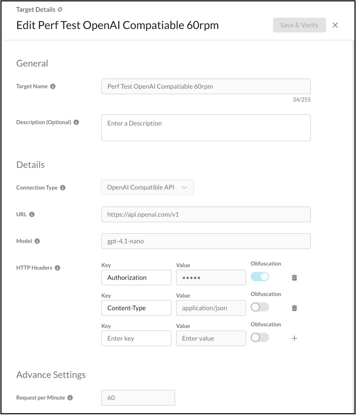 The Target Registry can also be configured to test both the REST API and the OpenAI Compatible API. The required details should be entered into the form fields, as illustrated in the screenshots below.