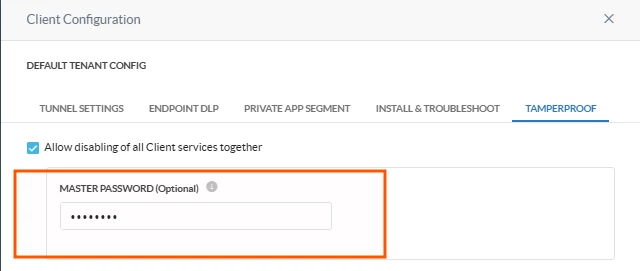Use when you need to disable the Netskope client on a device using a static password as the access gate. This is appropriate for managed devices where full client disablement is occasionally required and a shared password provides acceptable control. Because the Master Password is static and shared across all devices in the configuration, it should be treated as a low-security mechanism — not suitable for high-compliance environments.