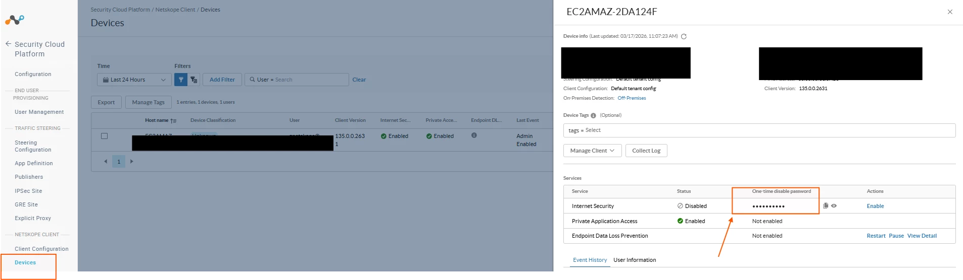 • Go to Settings > Security Cloud Platform > Netskope Client > Devices