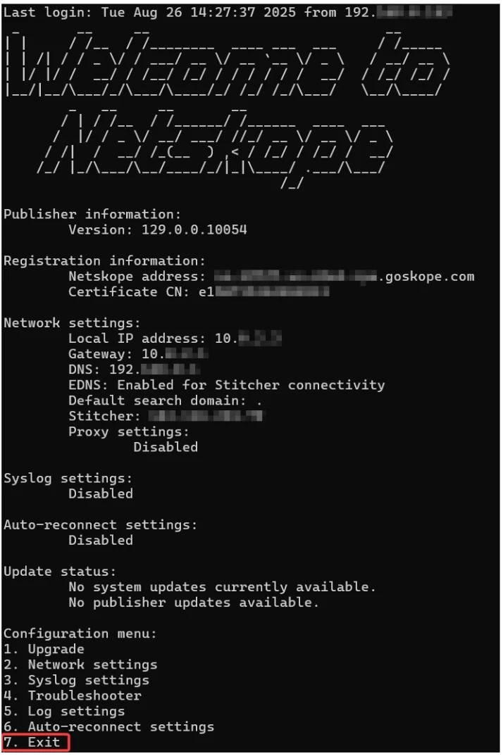 Step #1 - Log in to the command-line interface of your registered Netskope Publisher VM.