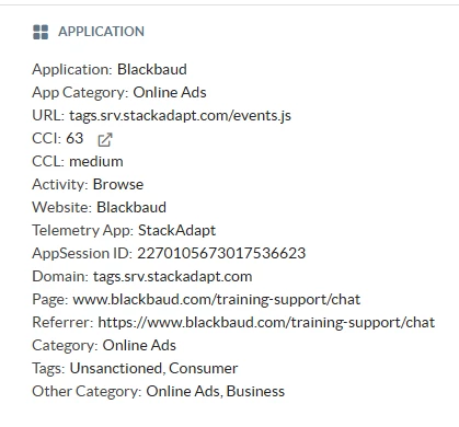 For example, we use the Blackbaud web application. While the main application functions as expected, the embedded chat bot is being blocked because it is categorized as Online Ads. The chat bot is an important feature, as it is used to create support cases for the application.