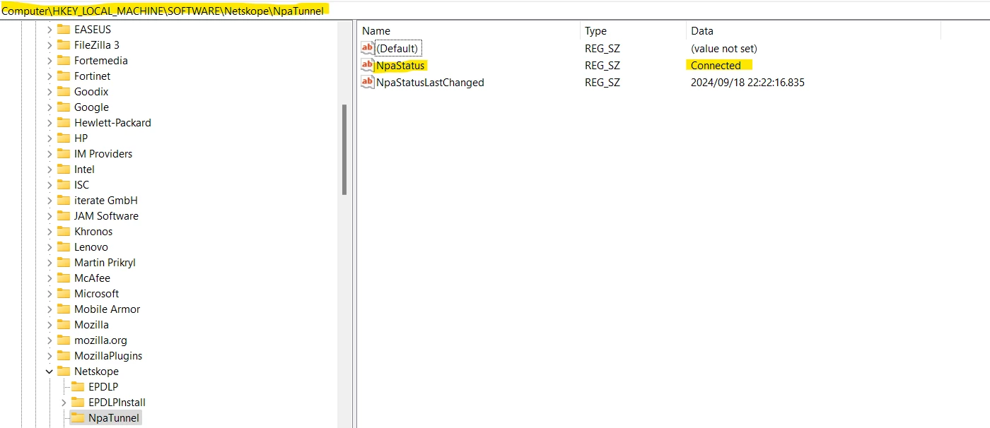 attached screenshot i want to monitor on these value when private app is connected value device will be managed .