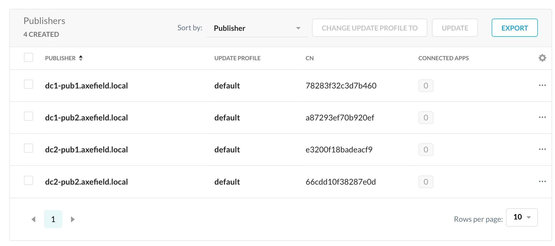 - Use a naming convention of publishers which will allow you to programatically filter. In my example I use dc1 and dc2 in names as an indicator for location, then have this as options in the form so the user can select app to be published via specific publisher group.