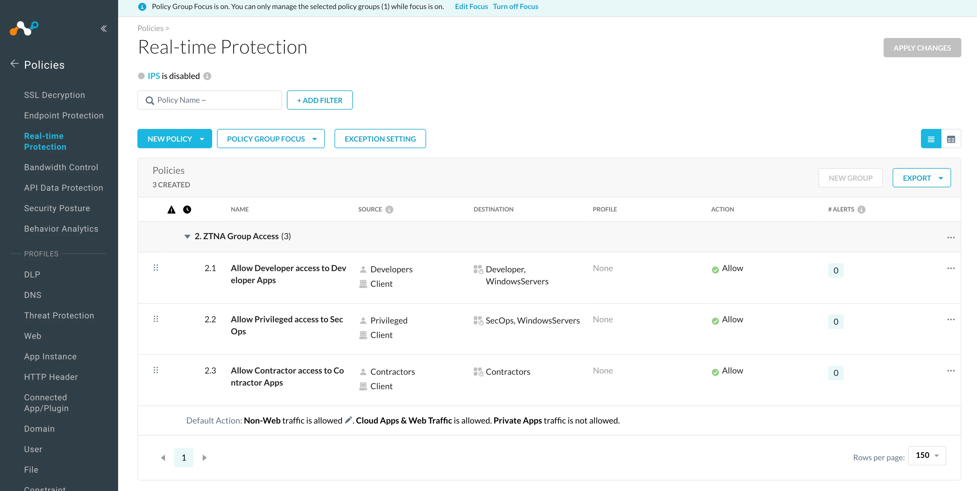 In this proof of concept I created a number of real-time policies to allow specific user groups access to specific application tags. This means if a new application is created and a tag applied users will automatically gain access to those applications based on their user group membership.