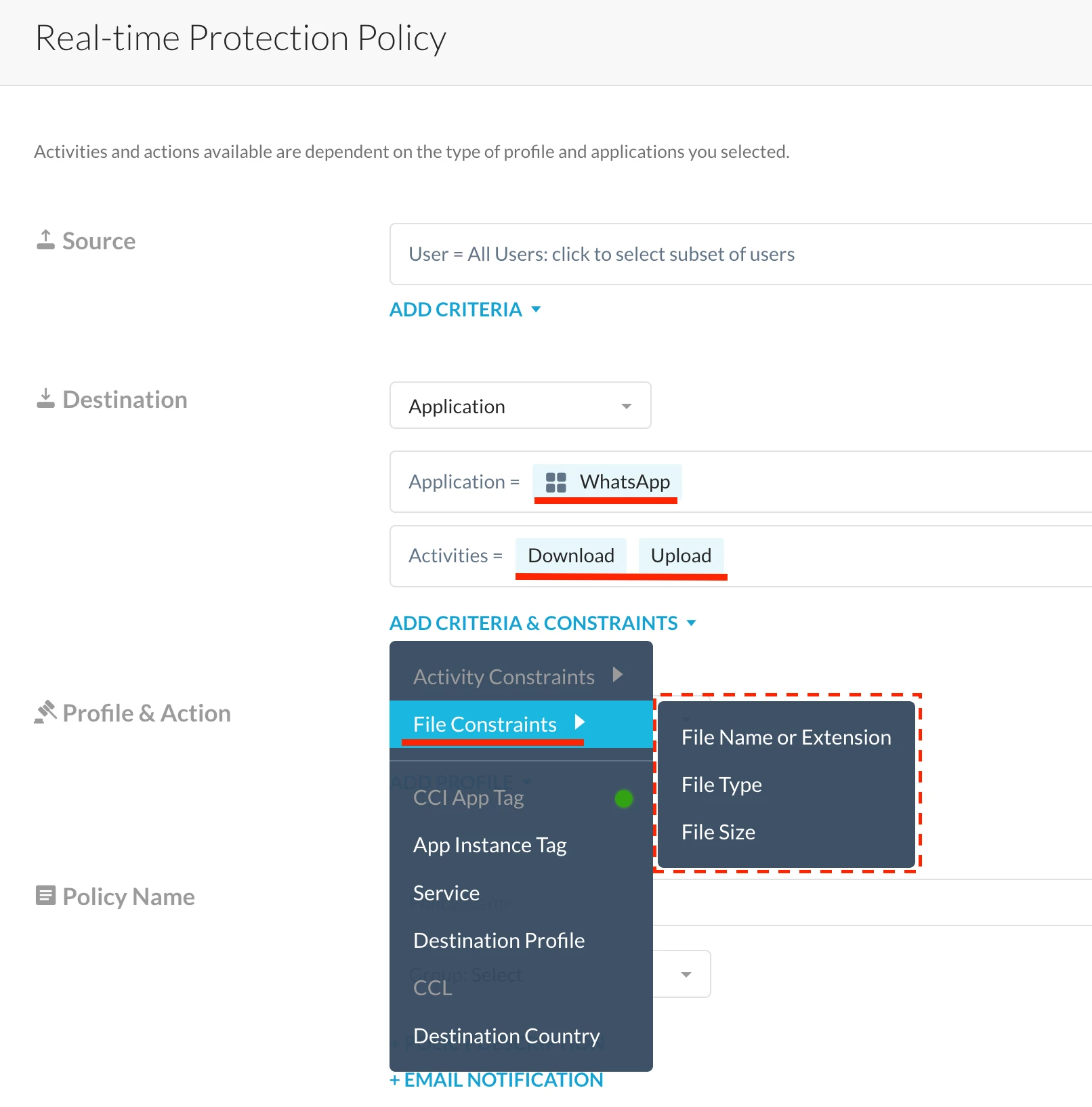 Question 11: Is it possible to apply File Type (File Constraints) controls to WhatsApp Web Access using Netskope’s pre-defined Cloud App Connector?